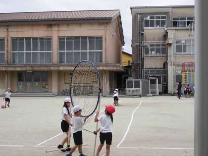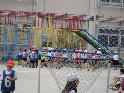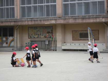1年生の体育の授業が始まろうとしています。ゴールを出したり,得点版を出したり,準備もしっかりと自分たちでやっています。