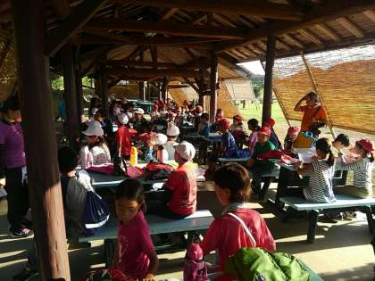 東屋で夕べの集いを行いました。浦山ラリーは全員無事に帰って来ました。