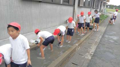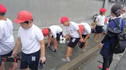 宮崎浜から帰り、足を洗いました。これからジュースタイムです。