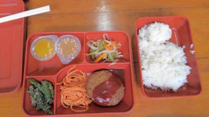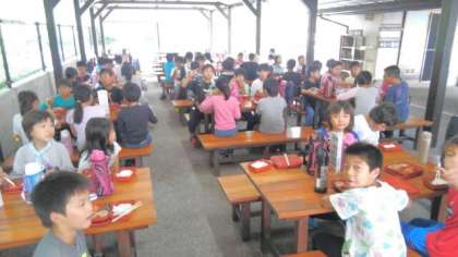 野外炊事場での昼食です。