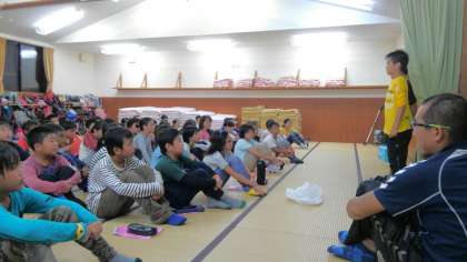 ナイトウォークが終わり、反省会を行いました。後は就寝して、最終日の朝をむかえます。明日の鳥羽水族館が楽しみです。お休みなさい✨