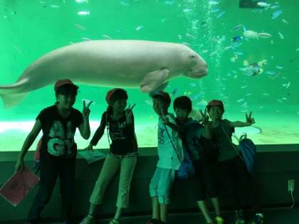 食事が終わったグループは、アシカのショーを観たり、水族館の生き物を観たりしています。この後は、1時に解散式をして、学校に向かいます。
