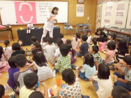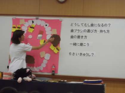今日は,歯科衛生士さんによる歯磨き指導でした。