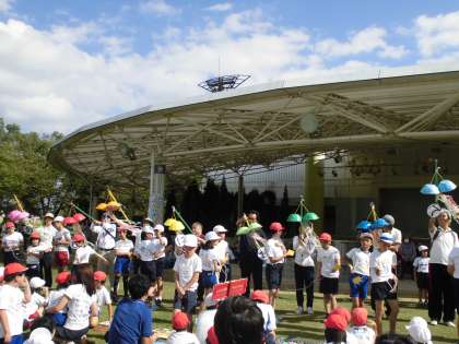 くす玉の中にはこんな言葉が・・・「あしたにむかって」