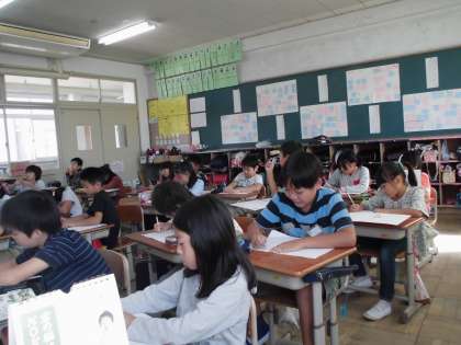 松田先生に,宿題の漢字プリントから間違えてた漢字BEST5の発表をしてもらい,漢字の書き取り練習をしました。自分が間違っていた漢字が黒板で発表されると・・・ドキリ!「あ〜これ自分が間違えたやつ!(問題)」と黙々と漢字練習に励んでいました。これで火曜日のテストも安心ですね◎ちなみにNO.1は『配達』の“達”です。幸せにしんにょうを書いている子が多くいました。