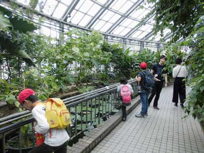 明親小学校の児童は,温室がお目当てでした。スタートはジャングルのような温室。珍しい花を見つけたり,砂漠地域ではびっくりするほど大きなサボテンを見ました。