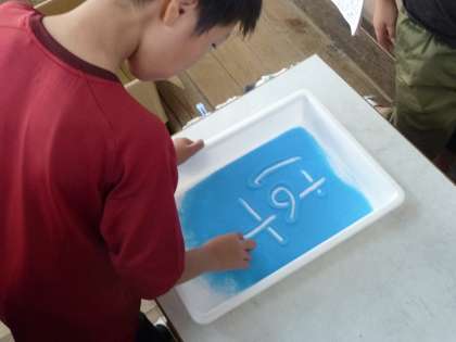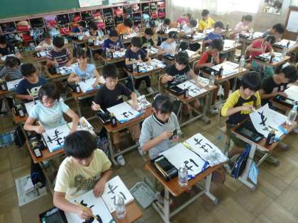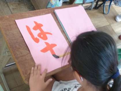 1019 4年生 毛筆「はす」 公開日 2016/10/20 更新日 2016/10/20 学校の様子 久しぶりの毛筆は,初めてのひらがな「はす」でした。 漢字やカタカナと違って,「曲線」や「結び」がポイントです。 最初は結びが黒く埋まってしまって苦戦していましたが, だんだんコツをつかんで,形が整っていきました。
