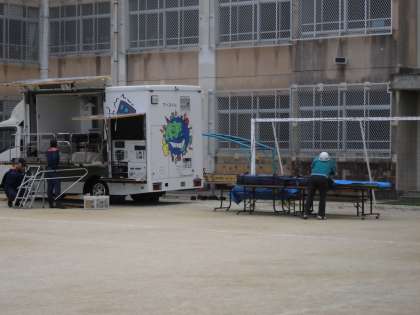 本日明親小学校校庭において淀学区防災訓練が行われます。朝早くから準備をしていただいています。たくさんご参加ください。