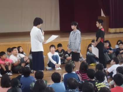 さらに,大淀中学校で開催された「音楽の集い」での6年生の合唱でのがんばりや音楽クラブの活動の紹介。毎日の集団登校のリーダーとしての活躍など最上級生としてがんばっている姿を紹介しました。