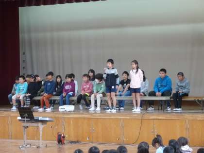 4年生の4人も緊張の面持ちで,全校児童の前でしっかりと意気込みを言えることができました。