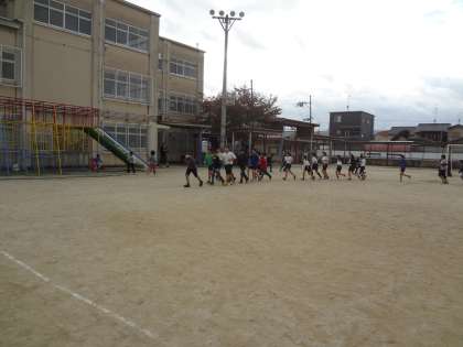 10分間,グラウンドを走りました。