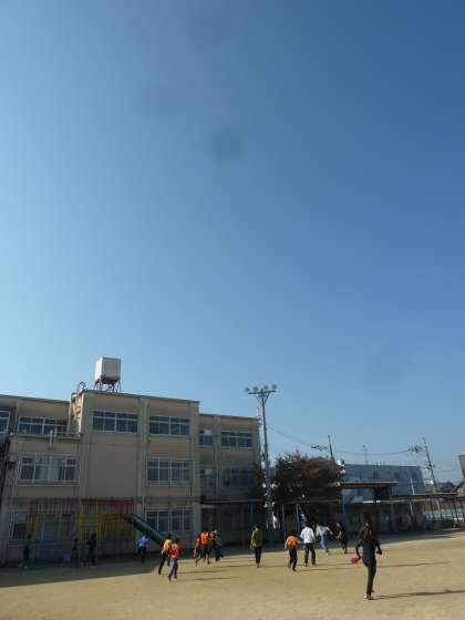 抜けるような青空の下,今日のおやじの会はタグラグビーでした。