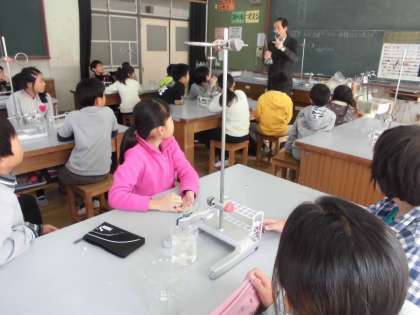 理科で『ものの温度と体積』の学習を進めています。今日は「温度が変わると,試験管の中の水の体積が変わるのか」という実験をしました。じぃー・・・と5分間試験管を見つめていた子どもたち。変化を見つけられたかな?^^