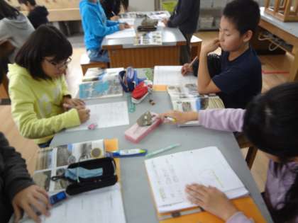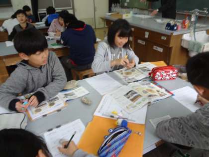 今日は,化石を観察して,その様子をワークシートへ記入しました。
