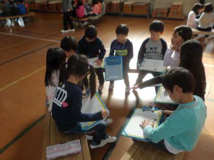 人権集会では,1・2年生合同で,友達との関わりについて学習しました。友達と些細なことでケンカをしてしまい,仲直りできないでいる主人公の気持ちを考えることを通して,仲直りするためには,どうすればいいのかについて考えました。まだまだ些細なことでケンカをしてしまうことのある低学年の子どもたちですが,そんなときに,相手のことを考えたり,自分の行動を振り返ったりしながら,行動できるようになってほしいと思います。
