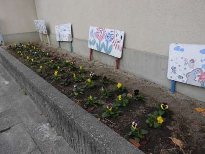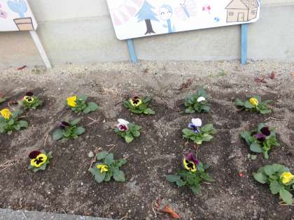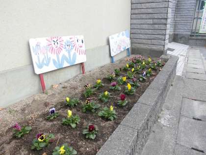 女性会の方々が,南門の花壇に花の苗を植えてくださいました。ぐっと冷え込んだ朝ですが,心がなごみます。いつも学校のことを気にかけていただき,本当にありがとうございます。