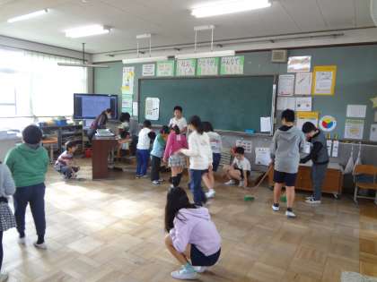 廊下掃除のグループが,担当の場所が終わり次第,教室も手伝っています。