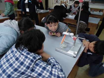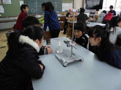 理科で『金ぞくのあたたまり方』,『水のあたたまり方』の実験をしました。