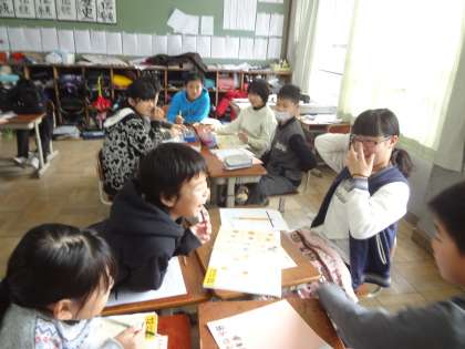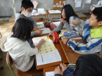 グループで,栄養バランスのよい一食分の献立を話し合っていました。