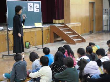 本日は今年最後の授業日でした。朝会では校長から「あいさつ」ができると成績が上がる話や,今年の漢字「金」のように自分の漢字「?」を見つけて,自分自身を振り返りより良い自分に「チェンジ」する話をしました。
