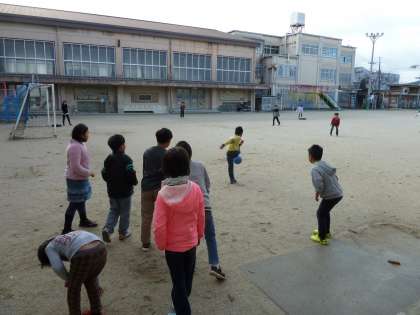 学習会が終わってからも,みんなでキックベースボールをしていました。