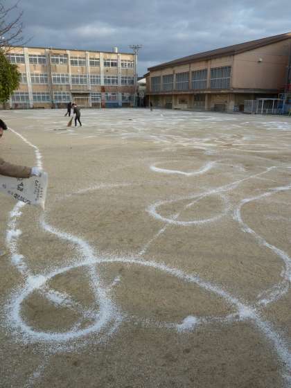 まるで雪が降ったようにきれいに運動場が覆われていました。