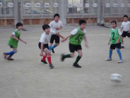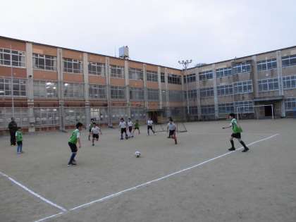 雪もちらつく寒さの中,参加人数は少なかったですが,一生懸命ボールを追いかけていました。