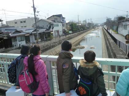 そして,帰りの深草駅で,先週社会見学で見た琵琶湖疏水の続きを見ることができました。
