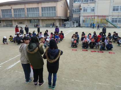 今日は雪がちらつく極寒の中,1年生から6年生まで大盛り上がりでした。