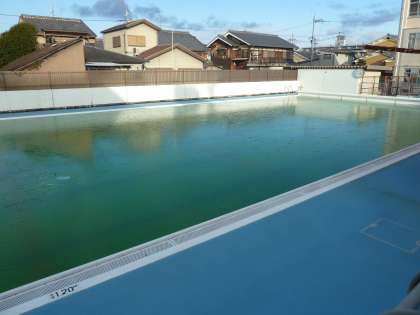 昨日の蓮池に続き,今日はとうとうプールに氷が張りました。