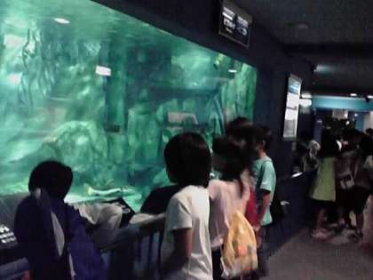 レストランでお昼ご飯(カレーライス)をいただき,その後,水族館の見学をしています。