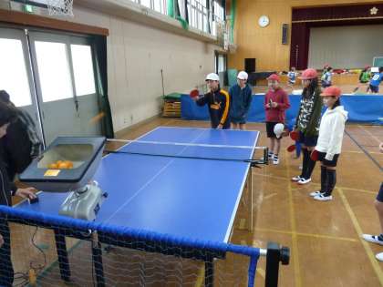 マシンを使ってレシーブ練習したり,直接対戦してくださったりと,毎回子どもたちを楽しませてくれています。