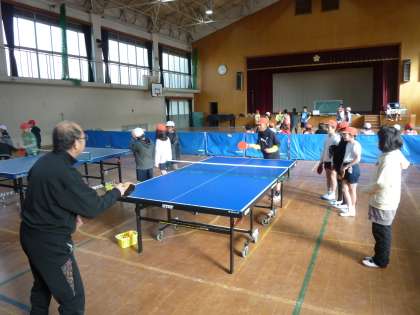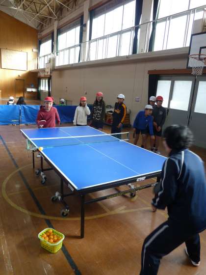 今日は,地域の卓球クラブの方々が教えに来てくださいました。
