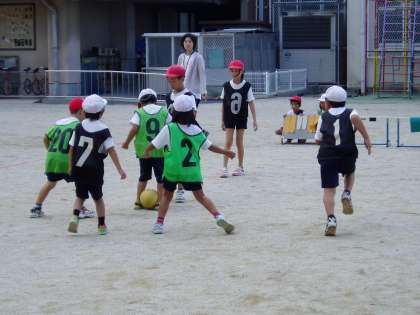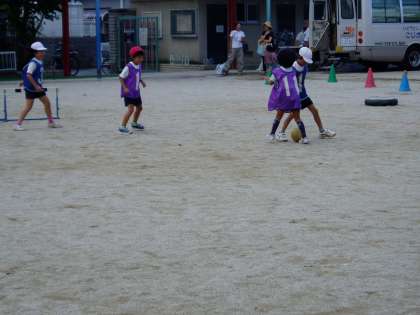2年生は,体育の学習で「ボールけりゲーム」を楽しんでいます。試合の最初と最後には,しっかりと挨拶もできました。