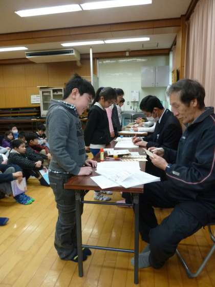 みんな緊張した表情で,検定してくれる先生のお話に耳を傾けていました。