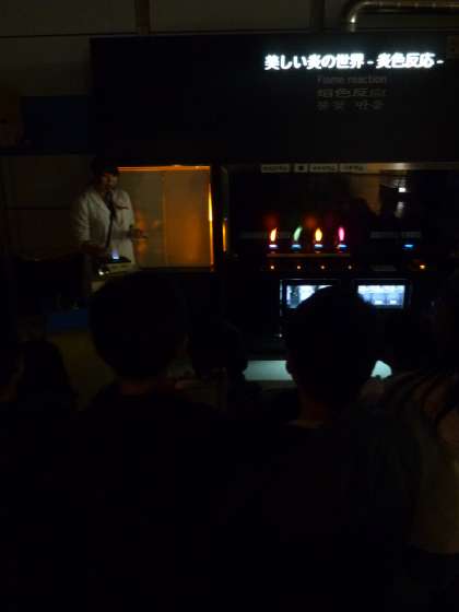 写真2 炎の色で燃えている物質を判別する実験