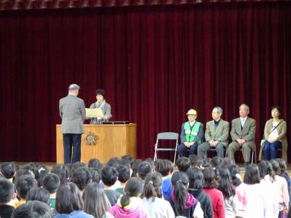 町別児童集会の前に,見守り隊のみなさんへ感謝状の贈呈式を行いました。