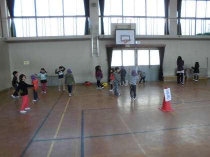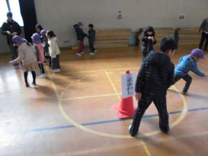 1年生の生活科で学習した遊び(こま回しやあやとり,なわとび,けん玉,折り紙やお手玉など)を園児に上手に教えてあげていました。