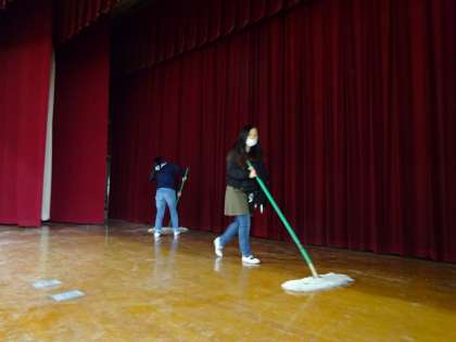見学していた子が,『ステージを掃除してもいいですか』と声をかけてきました。
