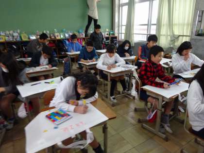 1組も2組も,それぞれおもいおもいの作品袋を作っていました。