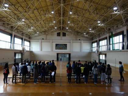 体育館での卒業式練習の様子です。