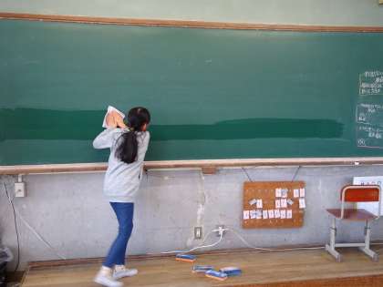 ワックスがけをしていると,2名の子どもが教室掃除を手伝ってくれました。