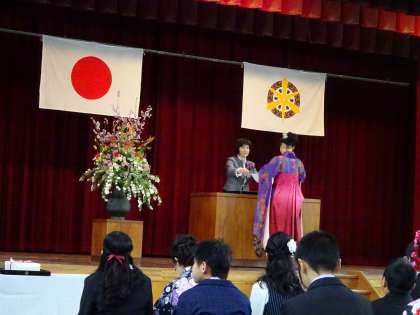 卒業証書を受け取っています。