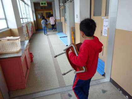 朝から,5年生が6年生教室の机・椅子の移動作業を行ってくれました。
