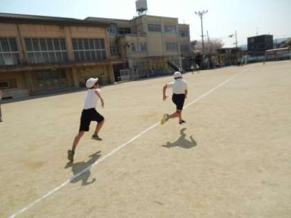 1回目の体育は,50メートル走です。