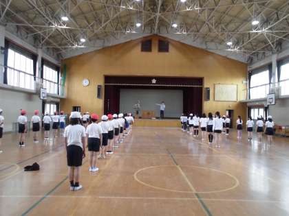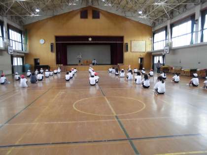 6年生は体育館で運動会へ向けての練習が始まっていました。6月3日(土)が運動会です。けがのないように!