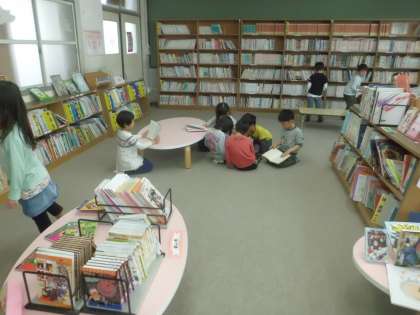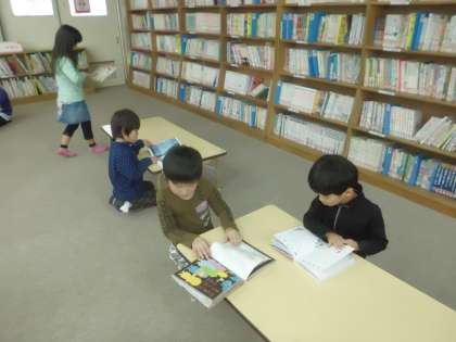 一人で集中して読む子,友だち同士読み合っている子様々です。