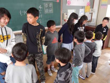 同じグループの1年生の名前を呼んで自己紹介をして握手をしました。