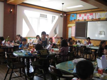 今日は,1年生がランチ・ルームで給食を食べました。いつもとは違った雰囲気の給食で,楽しくいただくことが出来ました。