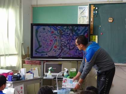 図画工作の学習の様子です。 ミエルモンを使い,拡大提示をすることで,視覚支援にもなっています。